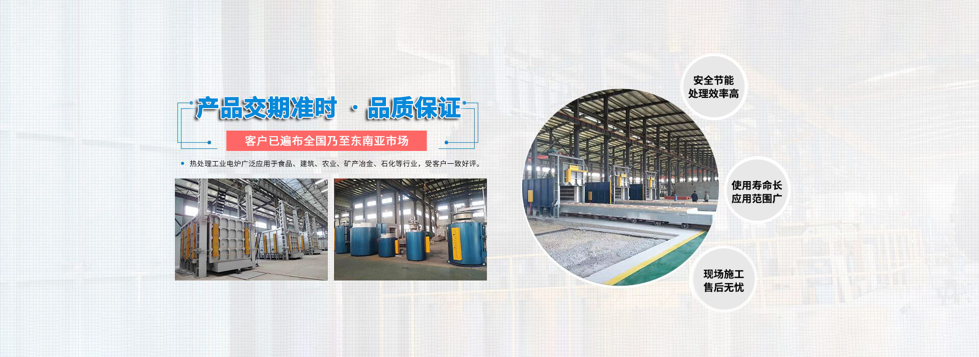 公司現(xiàn)有業(yè)務(wù)包括新能源電池?zé)Y(jié)爐、連續(xù)式金剛石鋸片燒結(jié)爐、臺(tái)車(chē)爐、熱風(fēng)循環(huán)爐、井式爐、罩式爐、管式爐、網(wǎng)帶爐、連續(xù)式滾筒爐、輥底爐、推桿爐、可傾式滾筒爐、鋼帶爐、鋁合金淬火爐、時(shí)效爐、坩堝爐、熔鋁保溫爐等??蓪?duì)工件進(jìn)行以電、天然氣、煤氣、工業(yè)燃油等為介質(zhì)的真空、保護(hù)氣氛、控制氣氛等各種自控?zé)崽幚怼?/p>